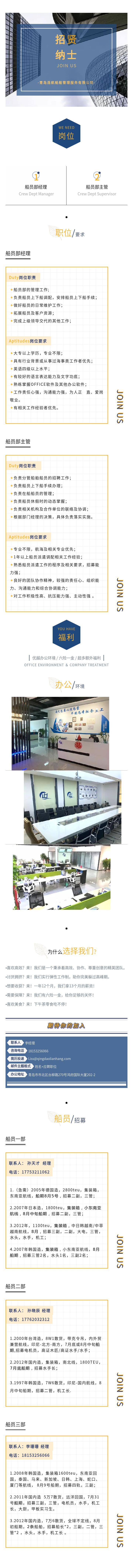 招聘船員部經(jīng)理、主管和船員