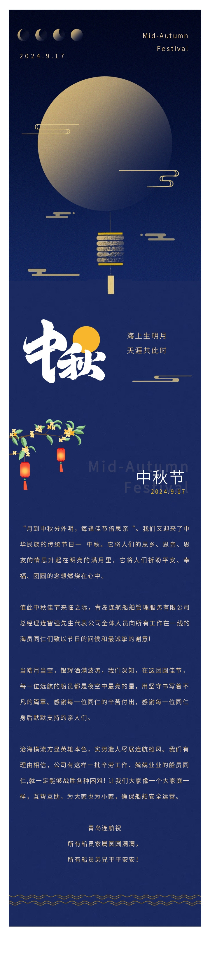 如“月”而至,情滿中秋 | 青島連航向堅(jiān)守一線的全體海員致敬!